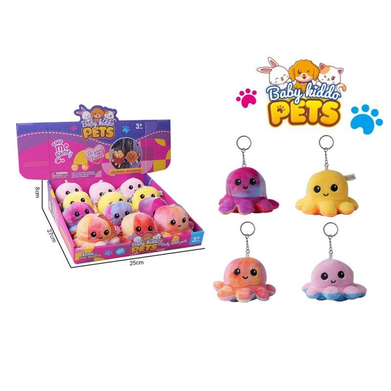毛绒解压搞怪双面翻转变脸章鱼家族公仔挂件(4色12只) |