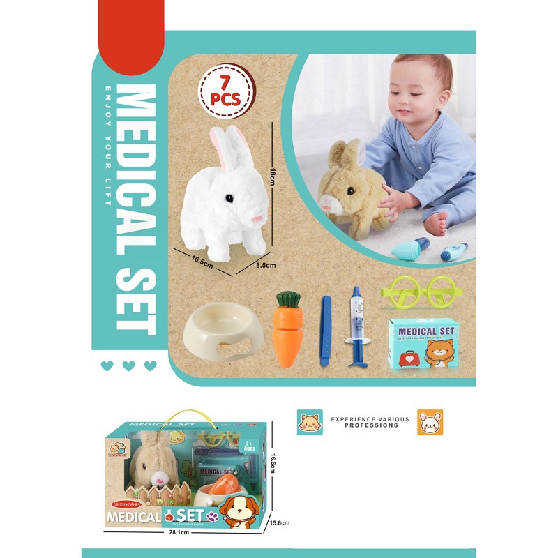 电动毛绒宠物兔子医疗套装仿真认知儿童益智玩具 |