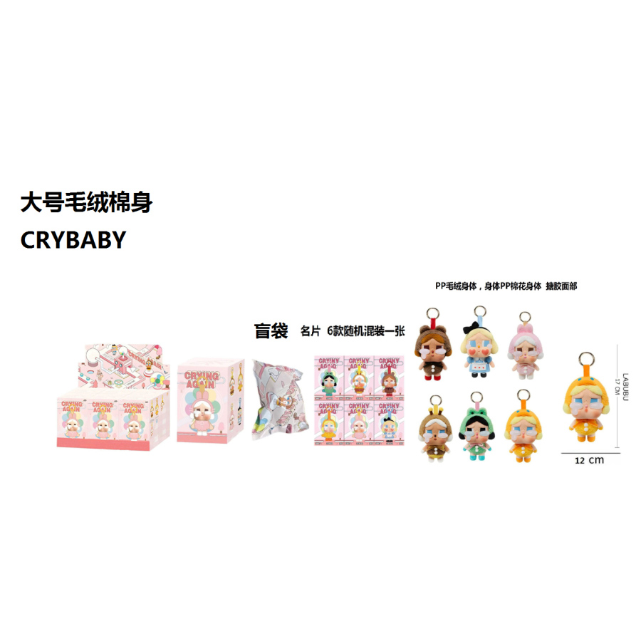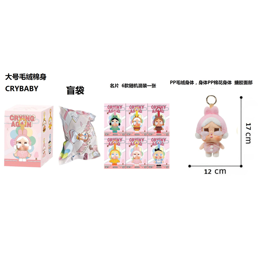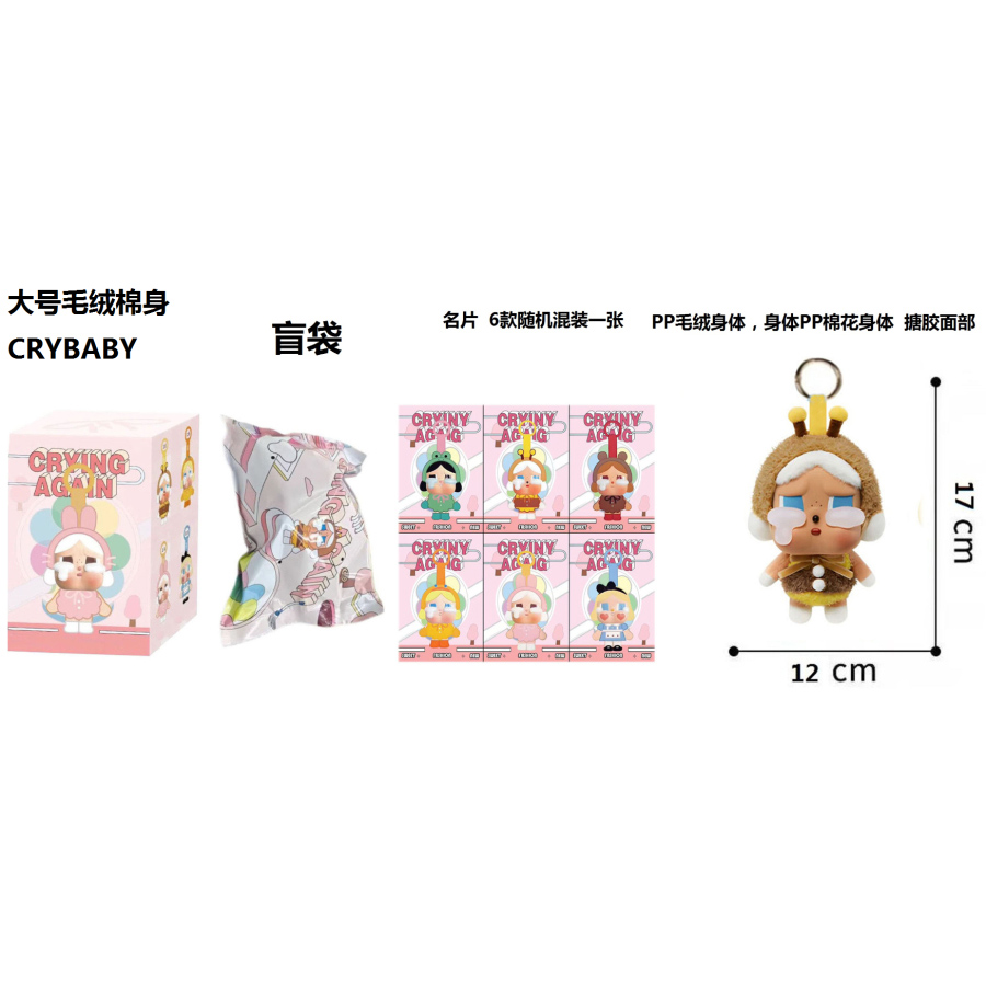 1比1大号 POPMART泡泡玛特 CRYBABY眼泪工厂毛绒棉身搪胶脸的哭泣娃娃蜜蜂带6款名片随机1张带钥匙扣 |