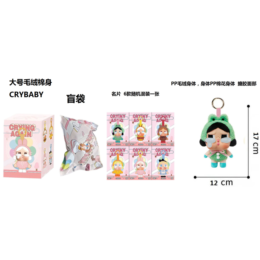 1比1大号 POPMART泡泡玛特 CRYBABY眼泪工厂毛绒棉身搪胶脸的哭泣娃娃青蛙带6款名片随机1张带钥匙扣 |