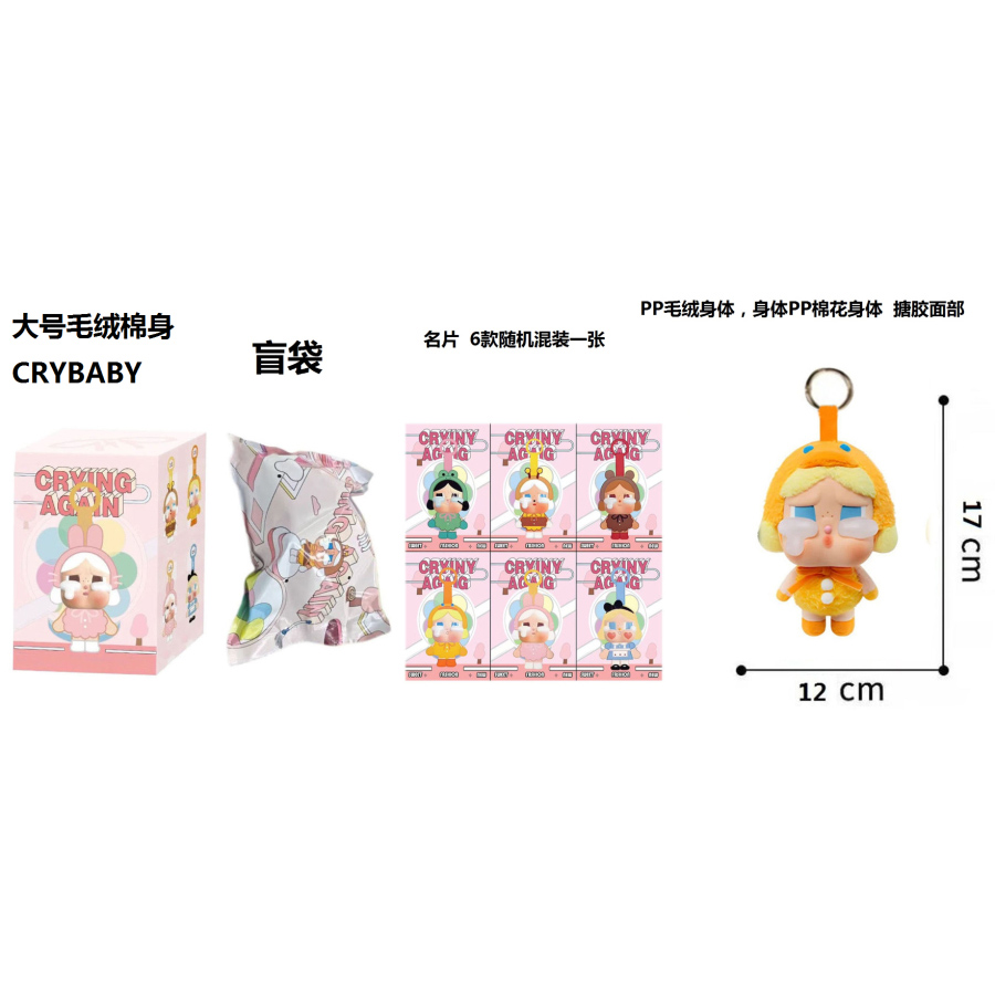 1比1大号 POPMART泡泡玛特 CRYBABY眼泪工厂毛绒棉身搪胶脸的哭泣娃娃哭鸭带6款名片随机1张带钥匙扣 |