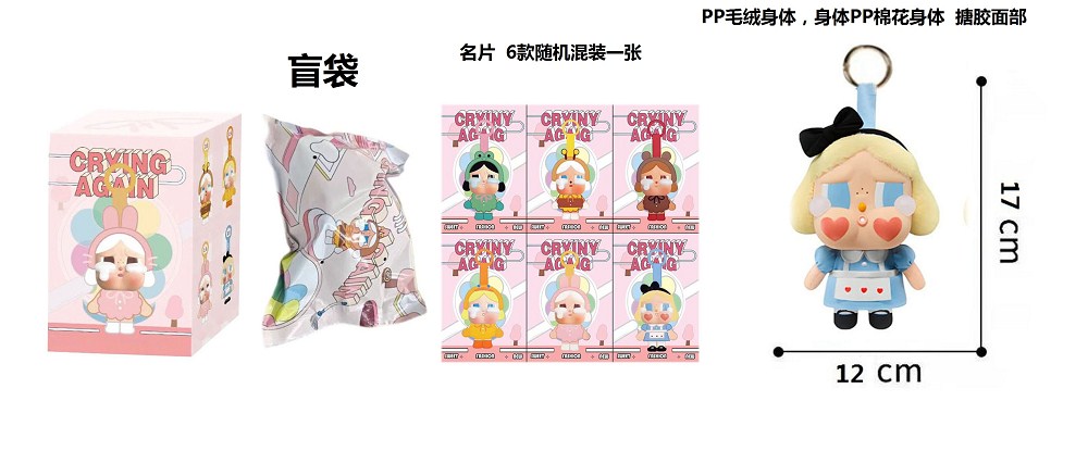1比1大号 POPMART泡泡玛特 CRYBABY眼泪工厂毛绒棉身搪胶脸的哭泣娃娃爱丽丝带6款名片随机1张带钥匙扣 |