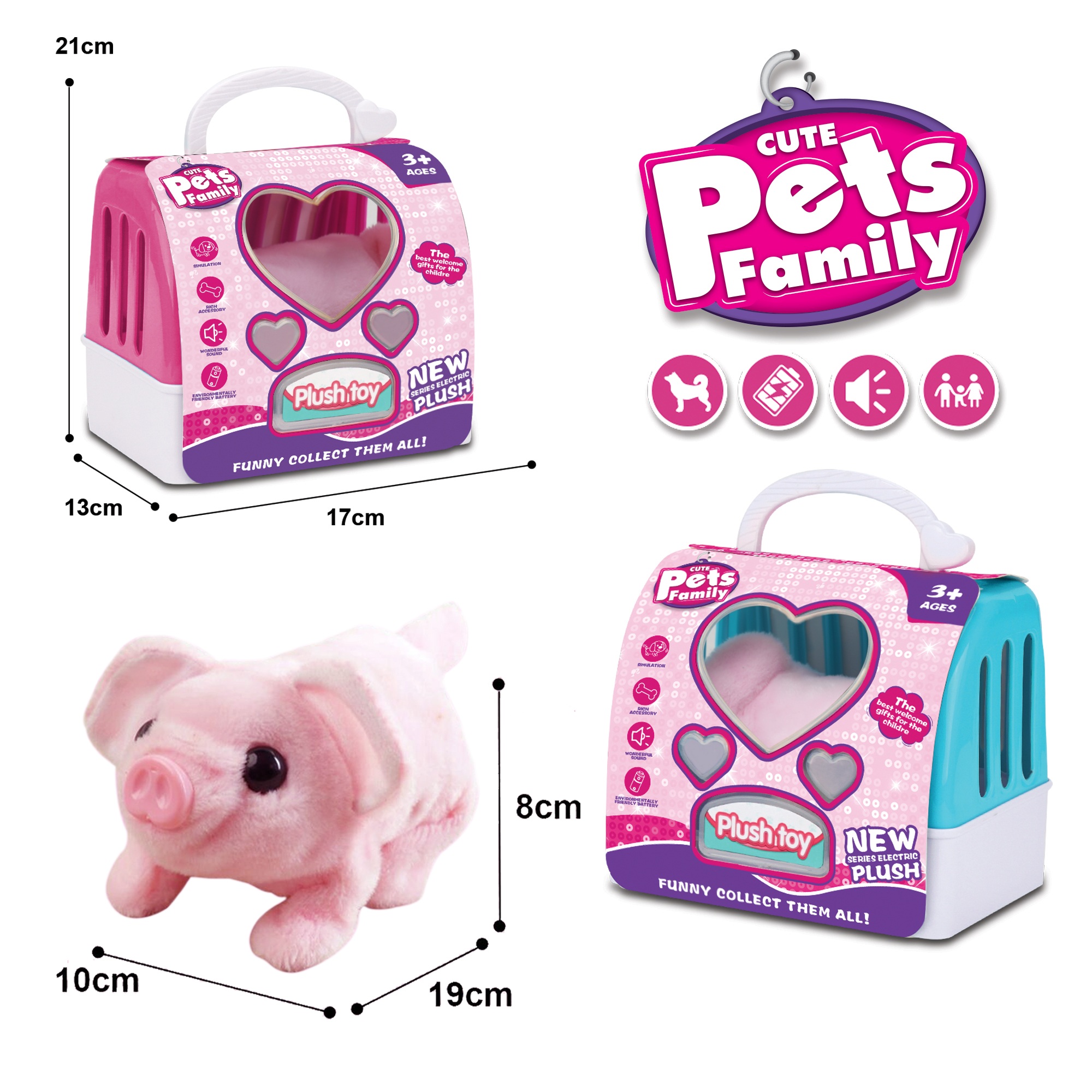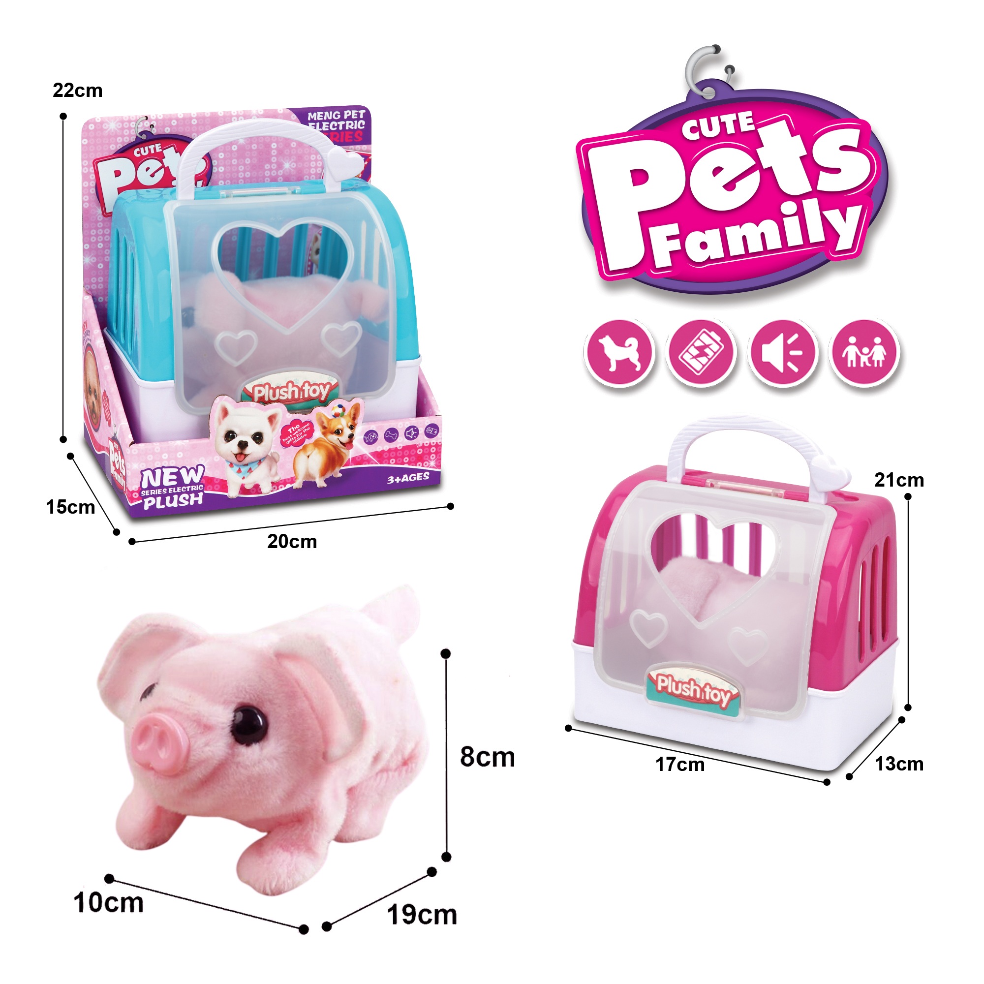 电动毛绒粉猪+2色手提笼 |