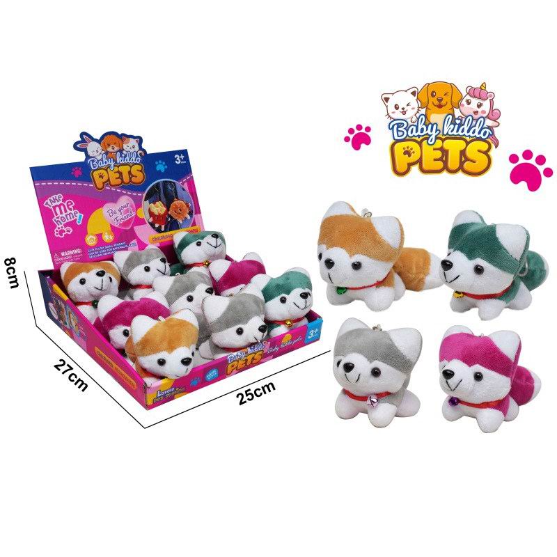 毛绒哈士奇狗玩偶挂件(灰色/红色/绿色/棕色)12只/盒 |