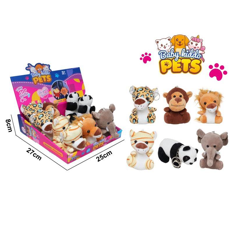 毛绒野生动物玩偶挂件(狮子/大象/金钱豹/老虎/熊猫/猴子)12只/盒 |