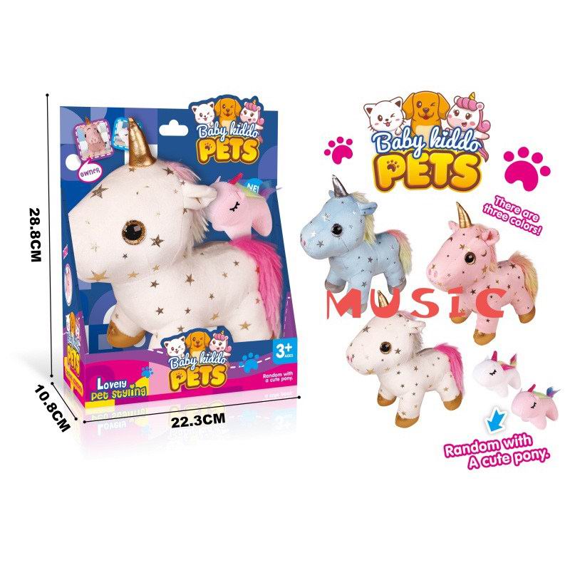 独角兽毛绒公仔毛绒公仔套装带IC(1大+1小颜色随机)不含电 |
