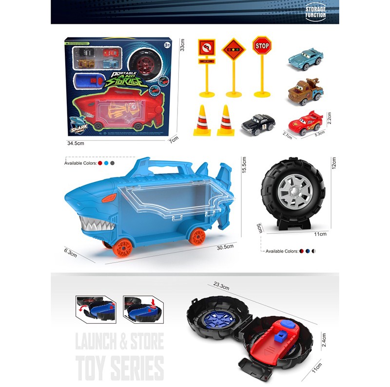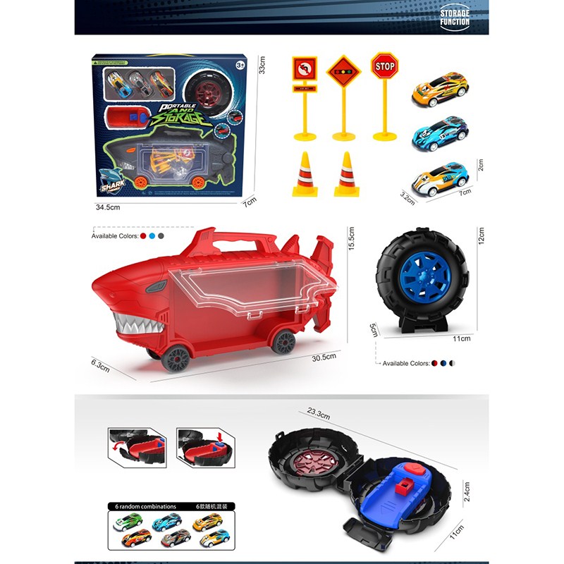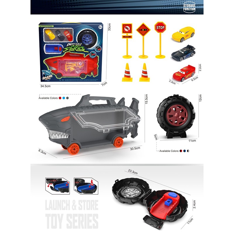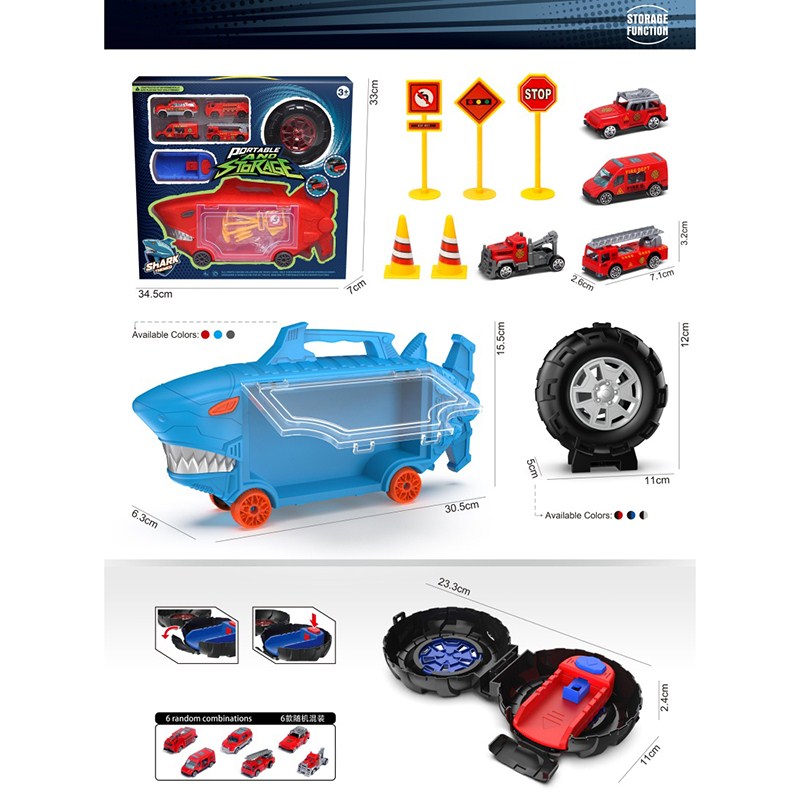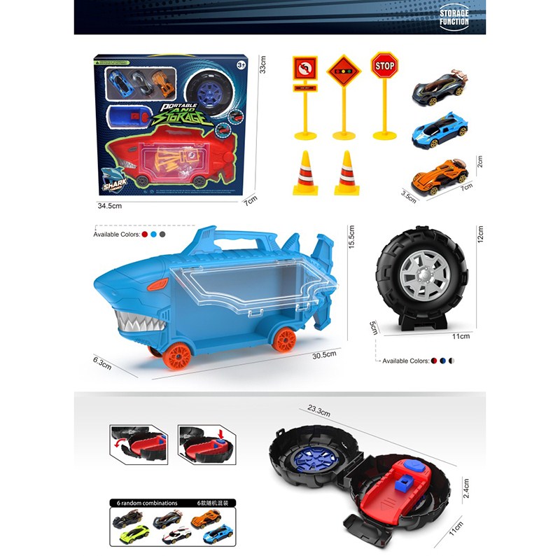 鲨鱼收纳车+小轮胎+ 3只合金车仔 |