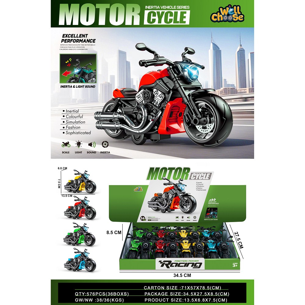 声光摩托车 三色混装 16只/盒 |