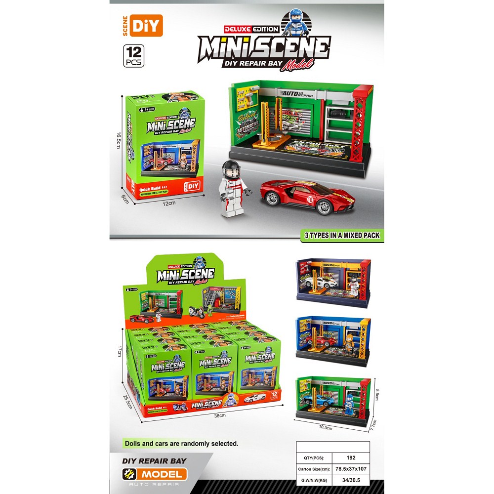 神奇版迷你场景汽车修车场带公仔 三色混装 |
