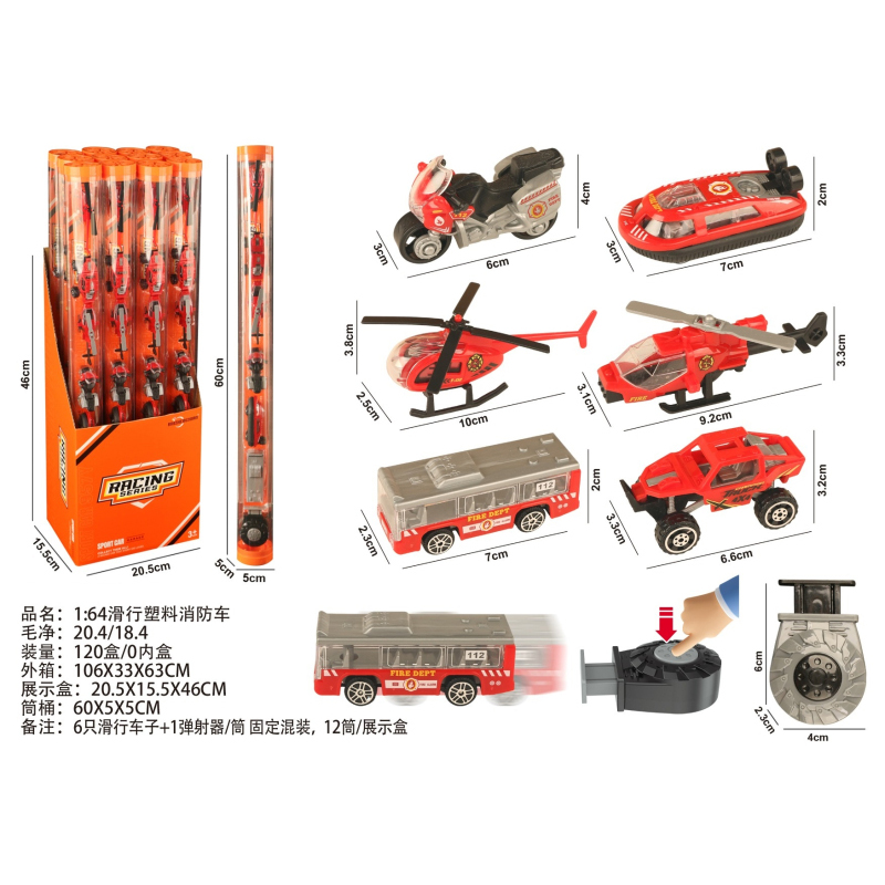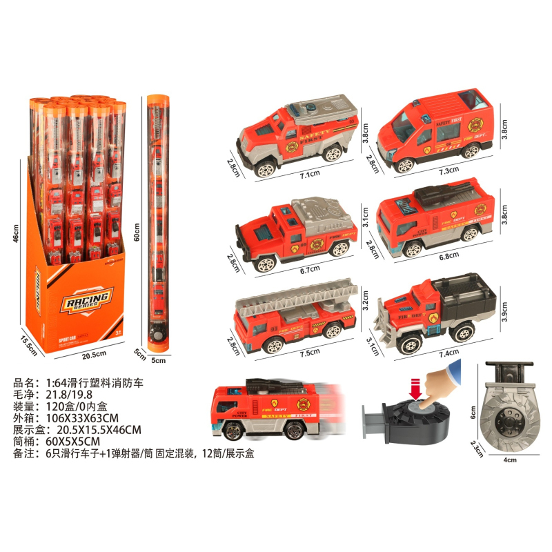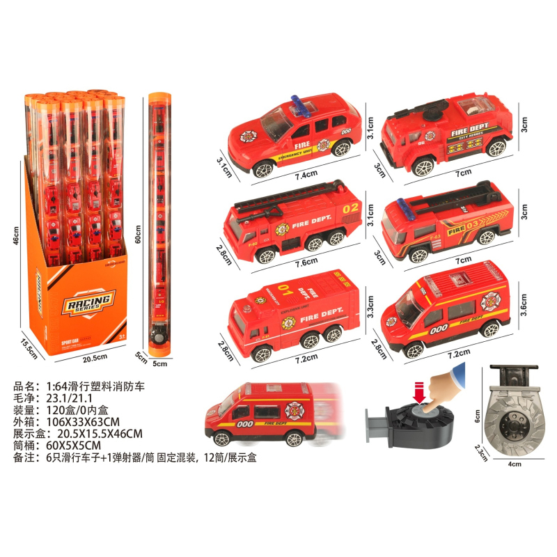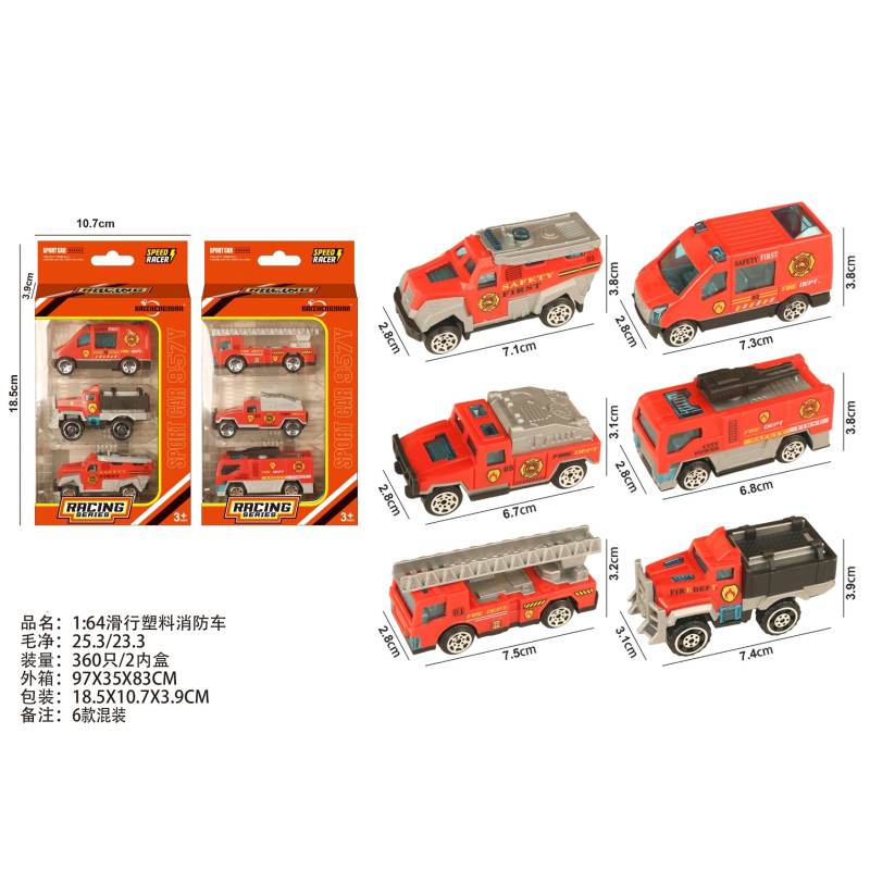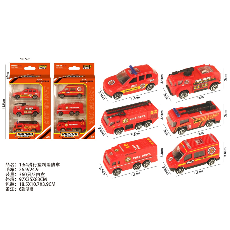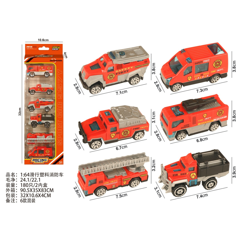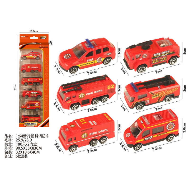 1:64 Slide Plastic Fire Truck |