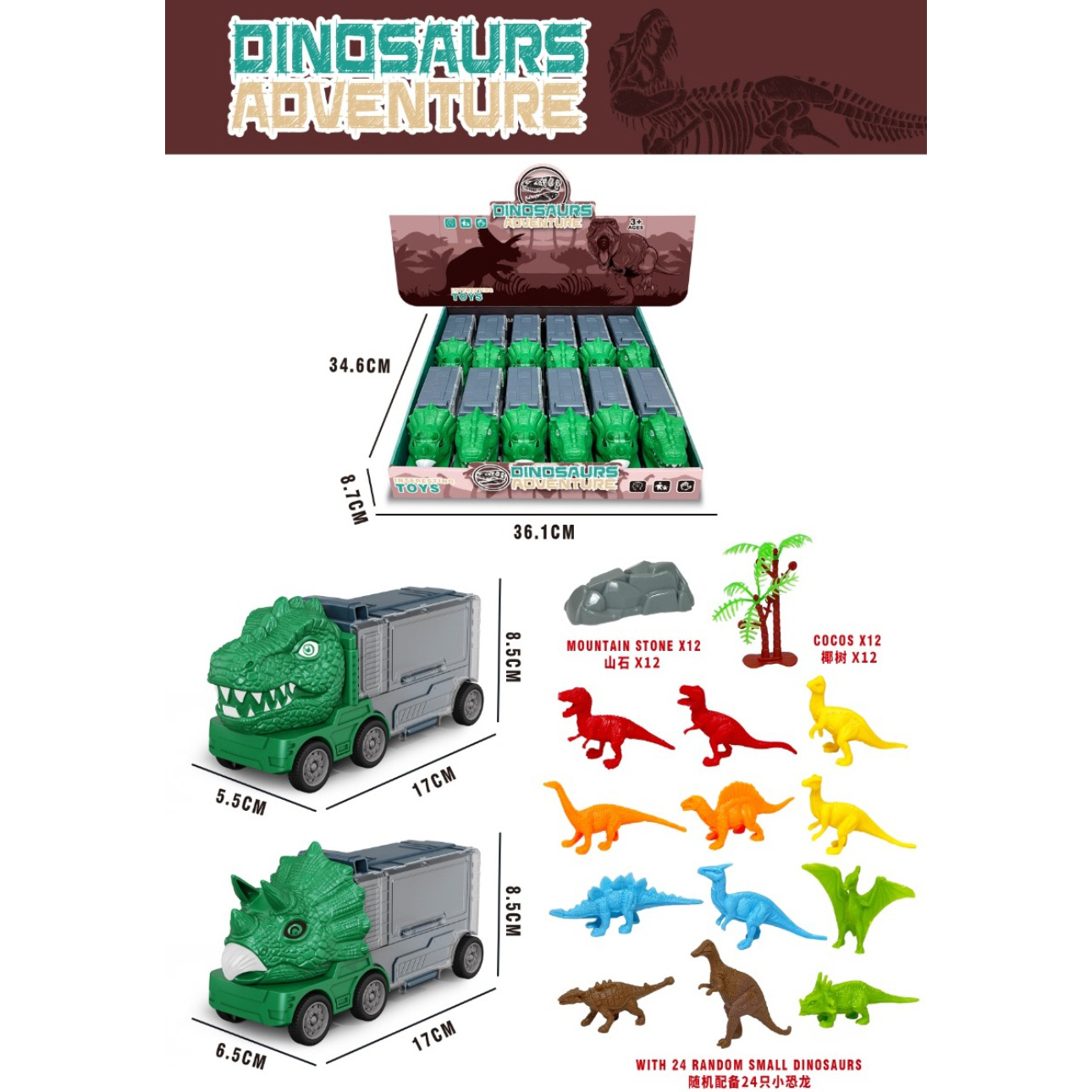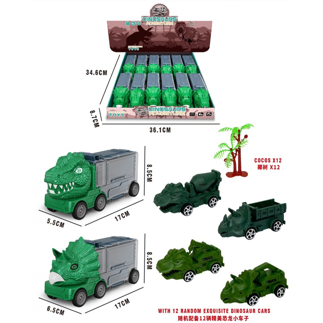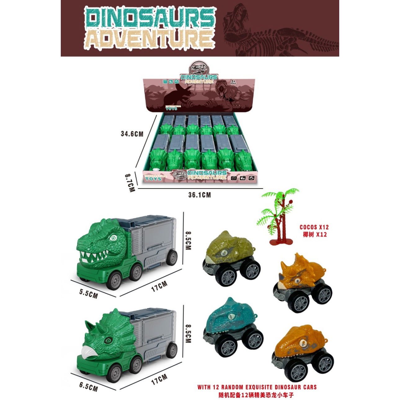 Slide Dinosaur Transport Vehicle 2 Colors Mixed |