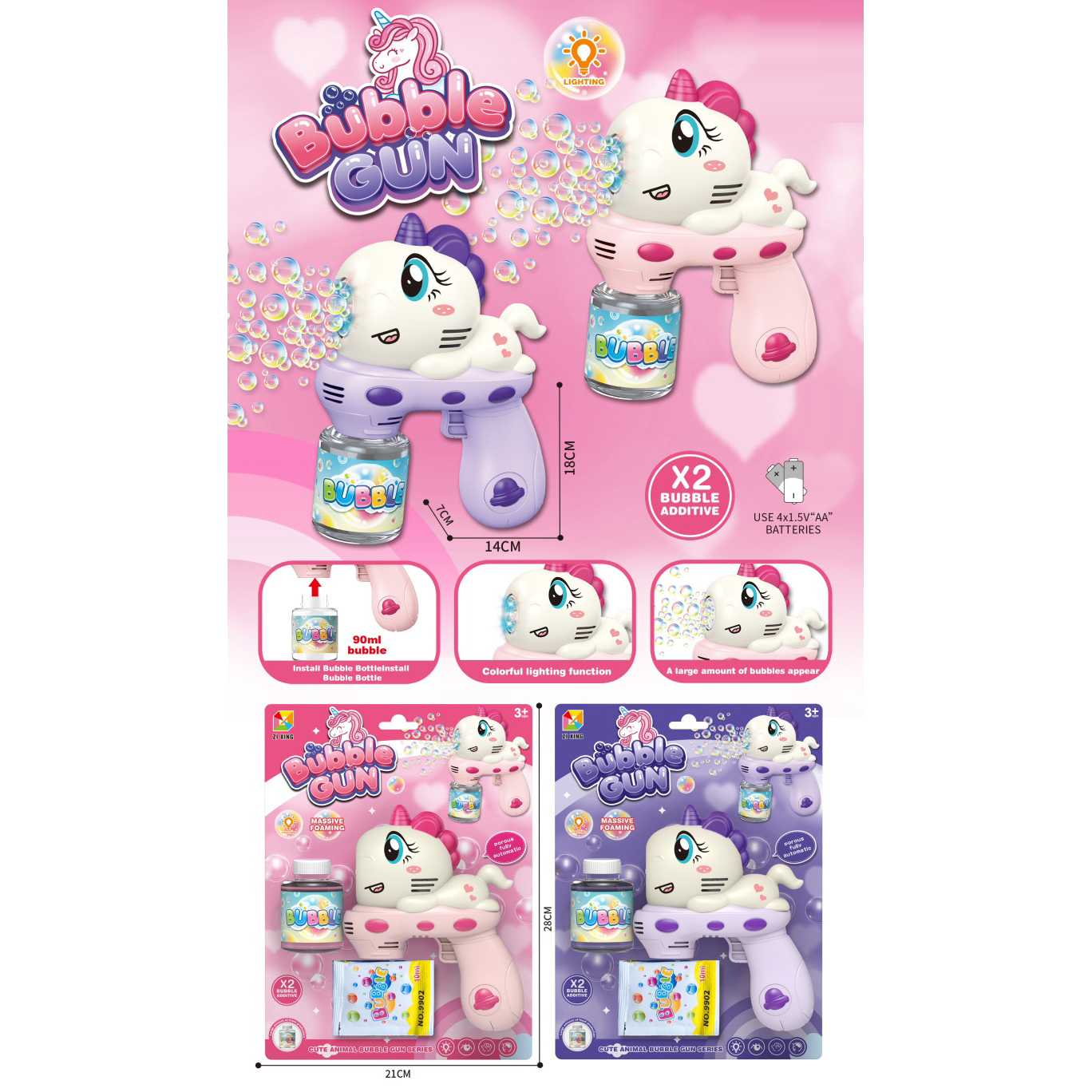 B/O Cartoon Unicorn Bubble Gun (with lights) |