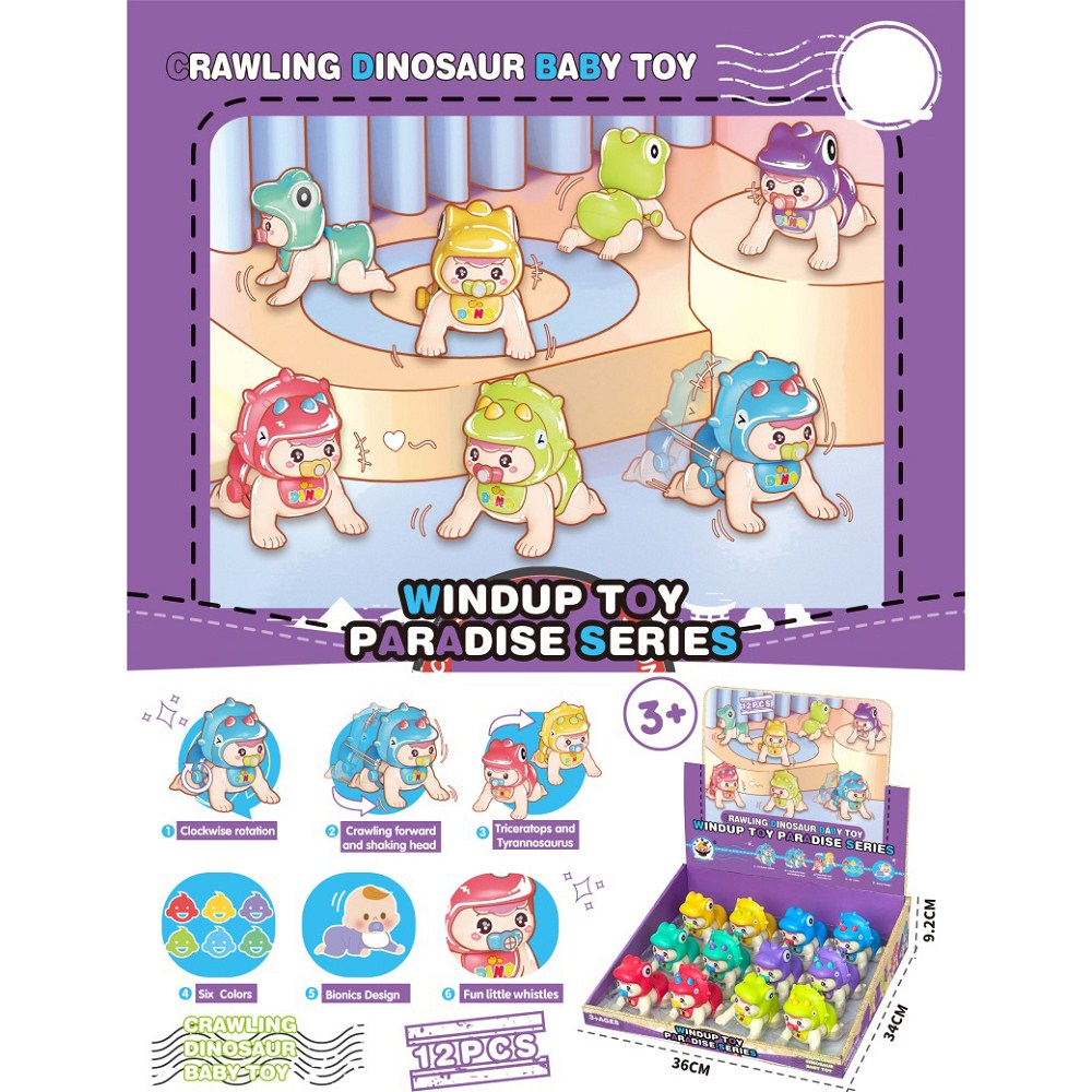 Wind-Up - Whistle Dinosaur Baby, Fully Wound, T-Rex Triceratops 2 Styles Baby (12PCS) |