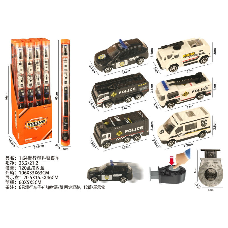 1:64 Slide Plastic Police Car |