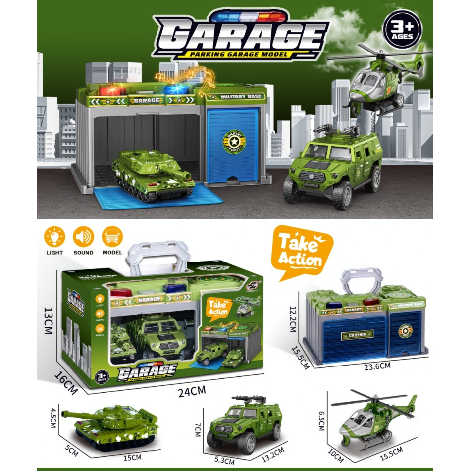 Inertial military vehicle lights music storage garage set |