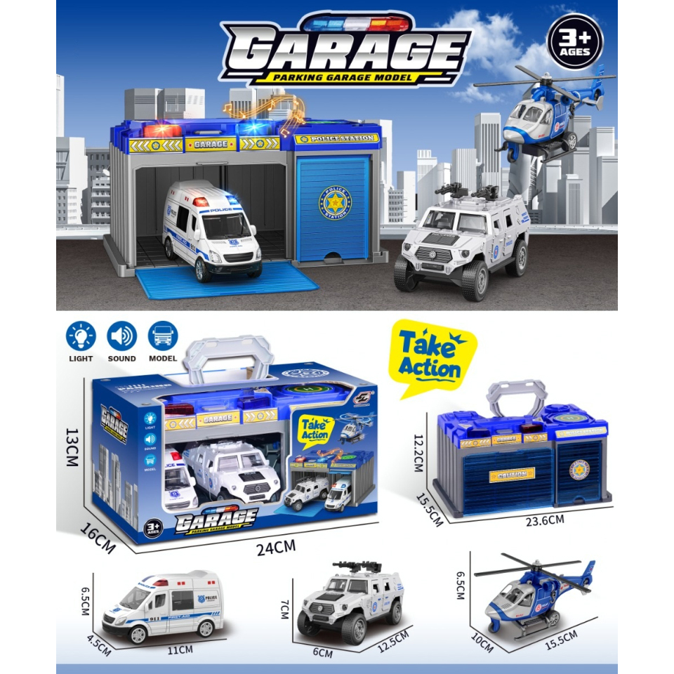 Inertial police car lights music storage garage set |