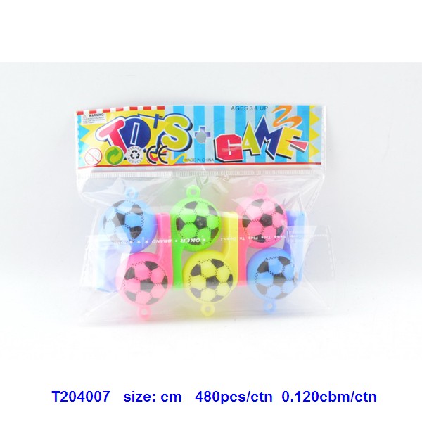 Six colored football whistles |