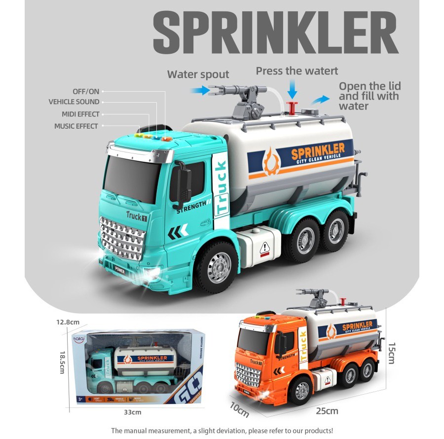 1:16惯性洒水车(带喷水) (4键带灯光音乐)蓝/橙混装 |