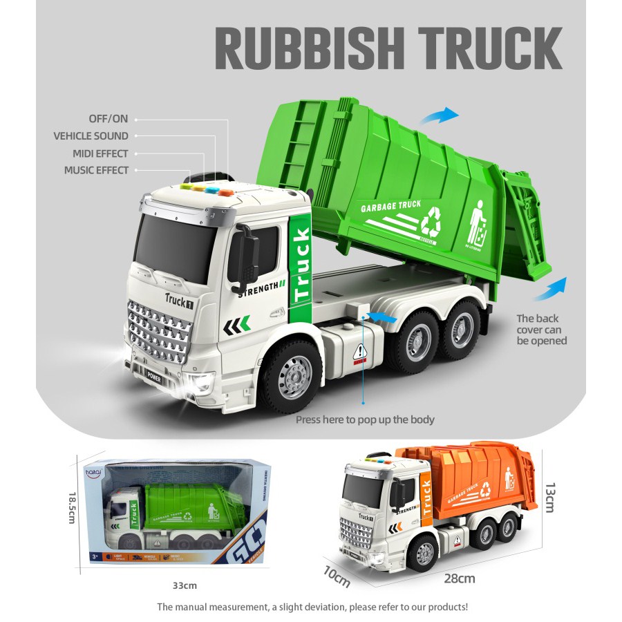 1:16惯性垃圾车(4键带灯光音乐)绿/橙混装 |