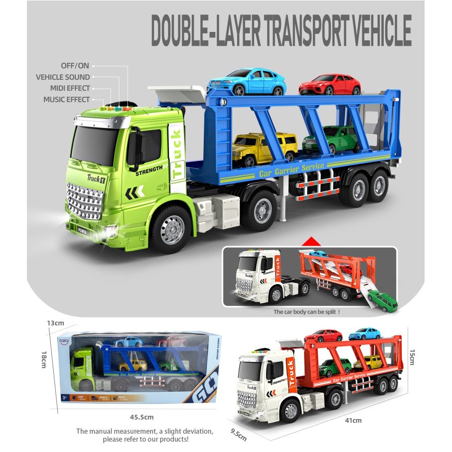 1:16惯性双层运输车(4键带灯光音乐)白/草绿混装 |