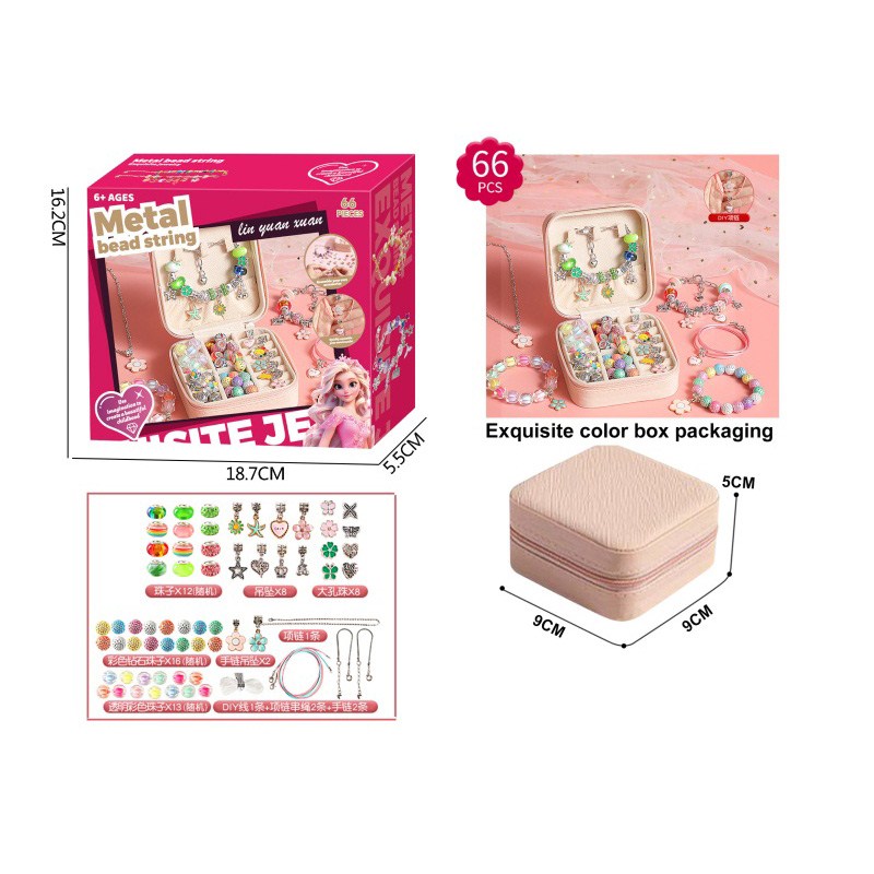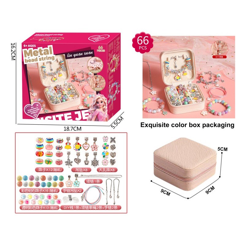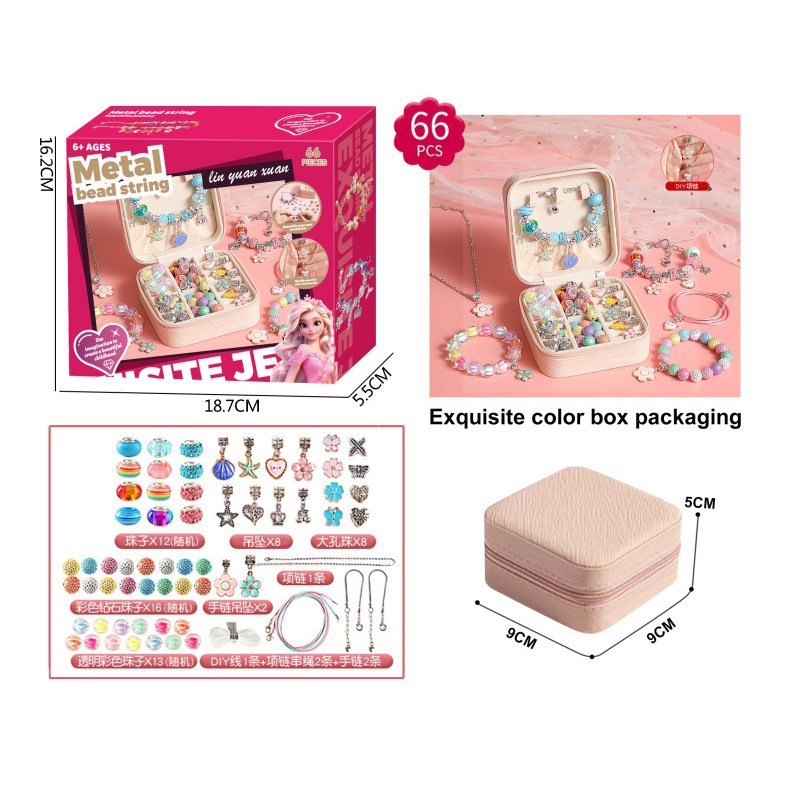 A款66件套双层方盒合金珠+AB珠(粉色+糖果色)女孩过家家饰品玩具 |