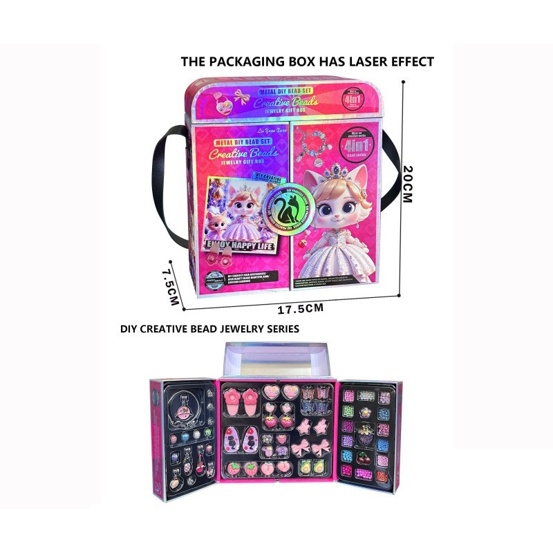 B款66件套双层方盒合金珠+AB珠(粉色+蓝色)女孩过家家饰品玩具 |