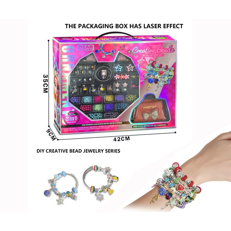 D款66件套双层方盒合金珠+AB珠(粉色+绿色)女孩过家家饰品玩具 |