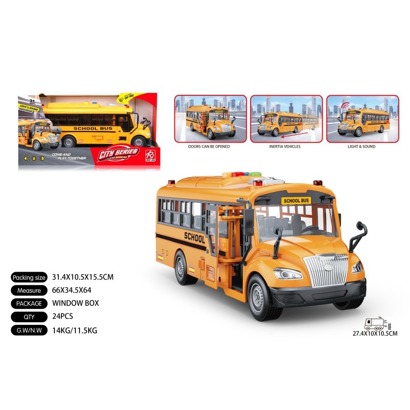 1:16城市校巴惯性灯光声音开门 单款单色包电-3*AG13 |