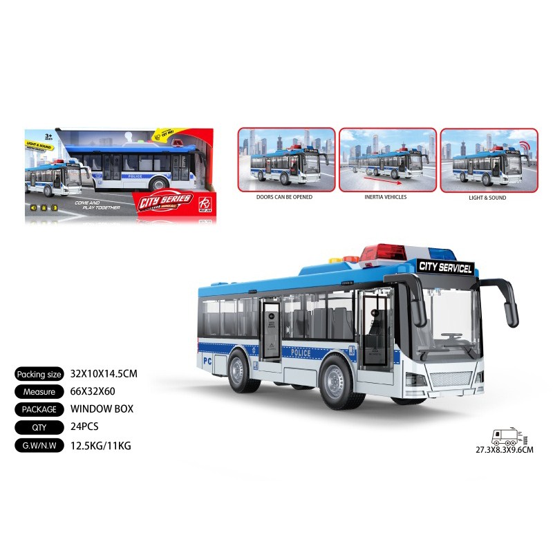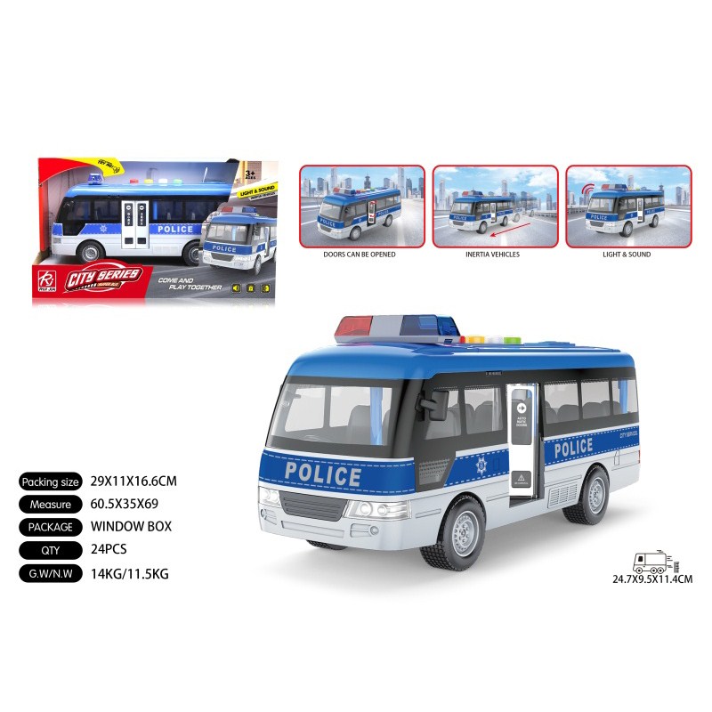 1:16警车中巴士蓝惯性灯光声音开门 单款单色包电-3*AG13 |