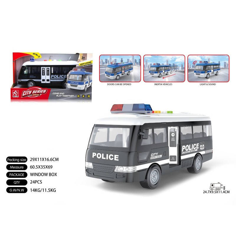 1:16警车中巴士黑惯性灯光声音开门 单款单色包电-3*AG13 |