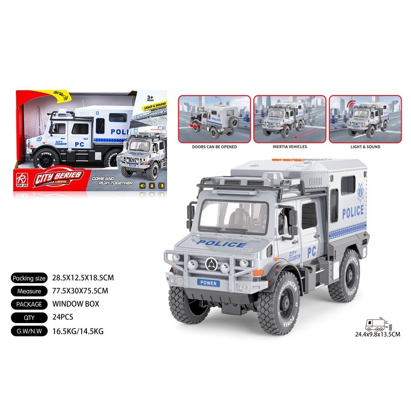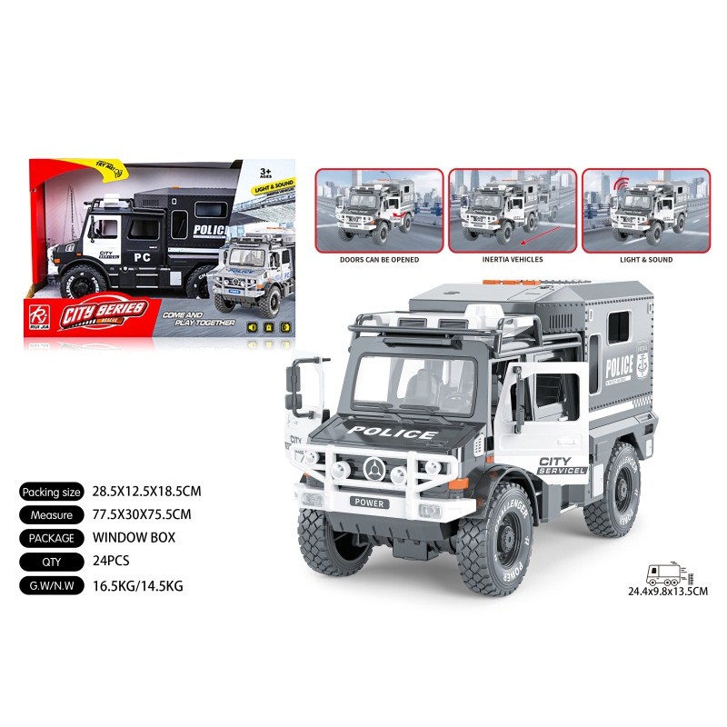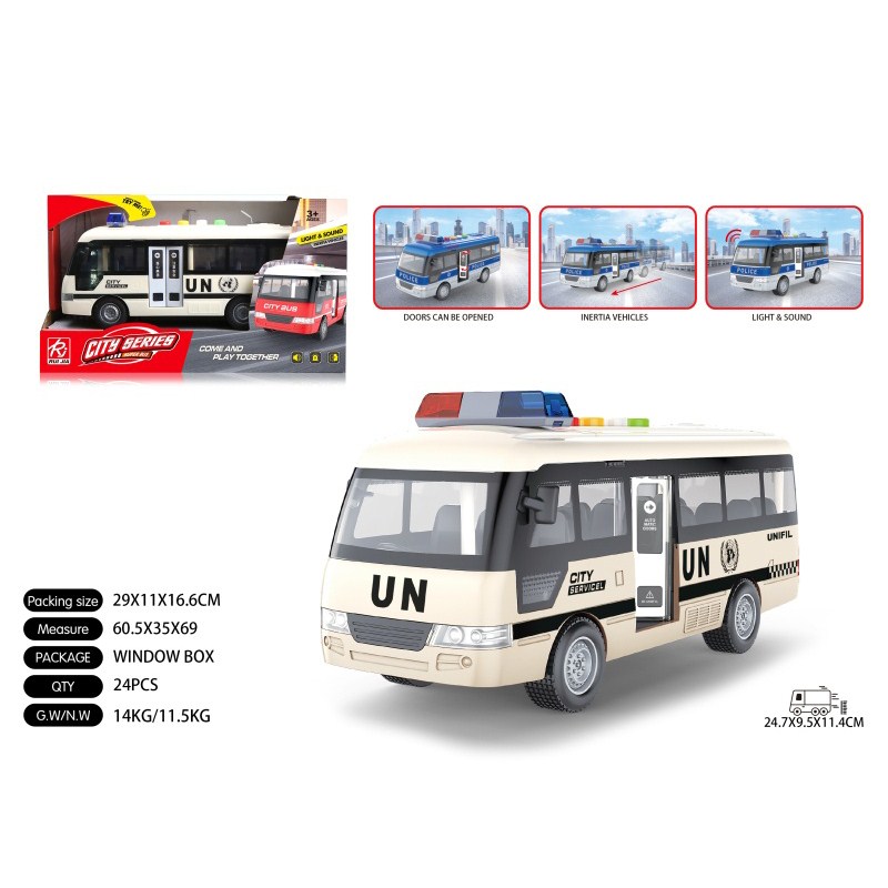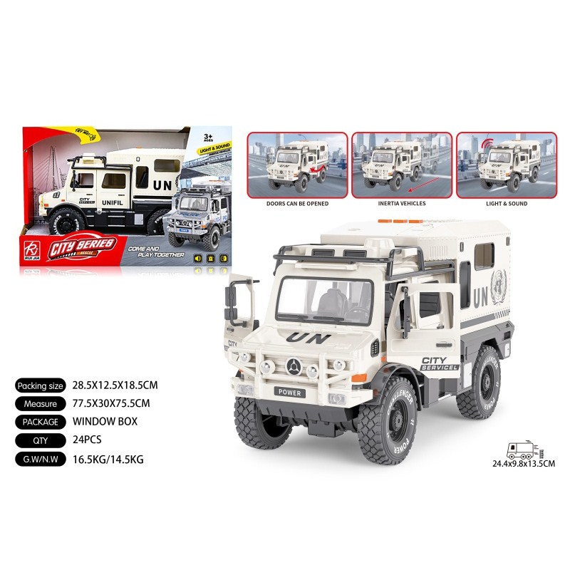 1:16双开门维和房车惯性灯光声音开门 单款单色包电-3*AG13 |