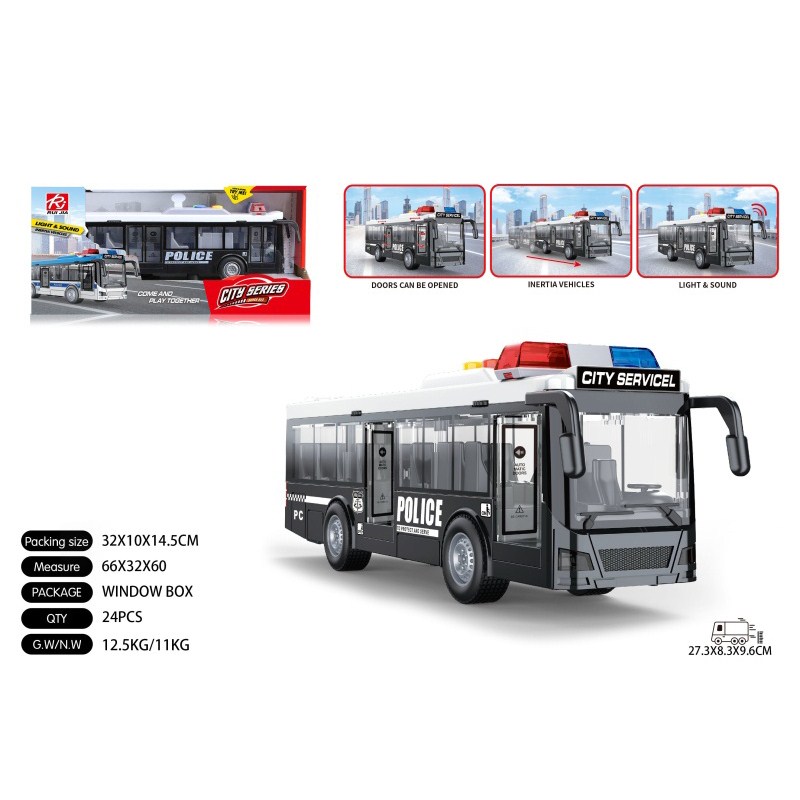 1:16警车单层巴士黑惯性灯光声音开门 单款单色包电-3*AG13 |