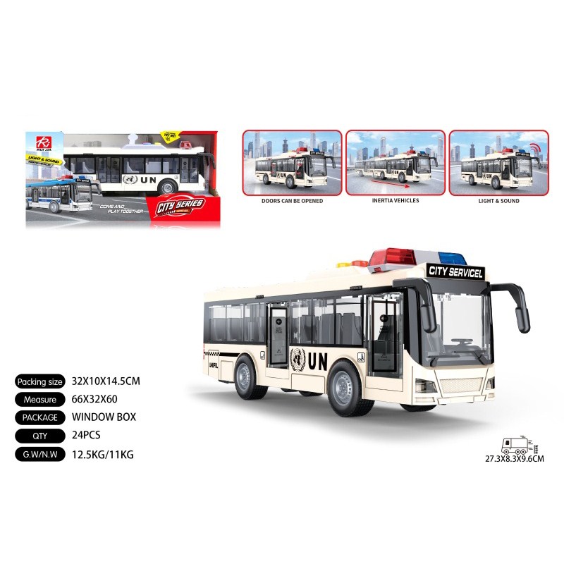 1:16维和中巴士惯性灯光声音开门 单款单色包电-3*AG13 |
