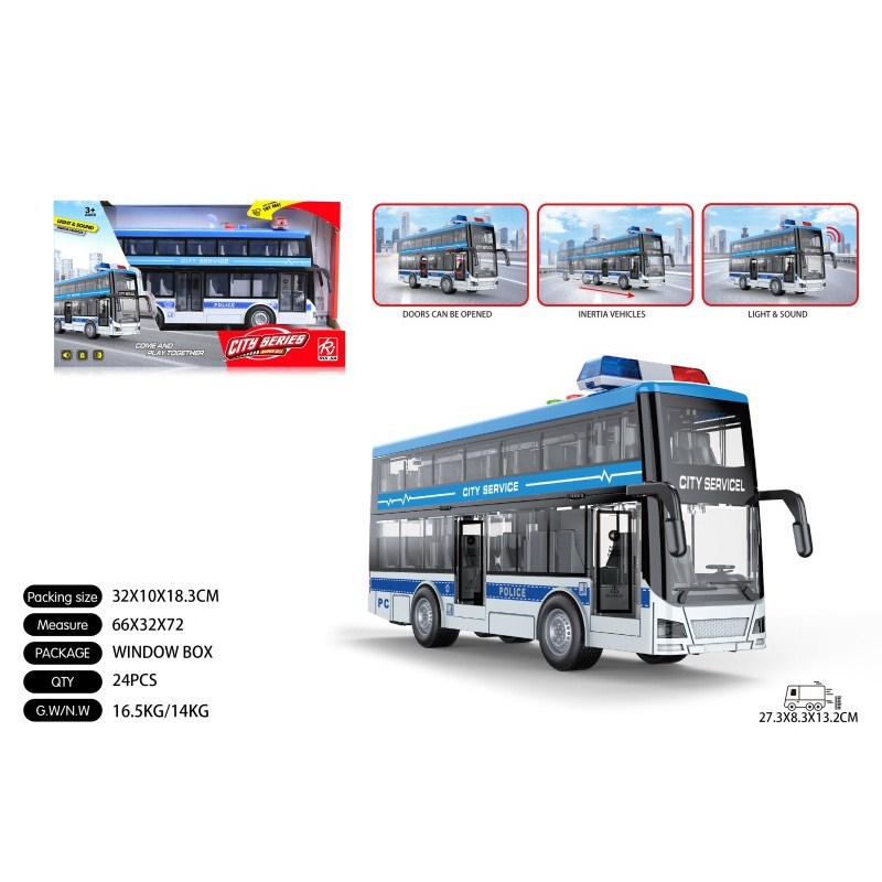 1:16警车双层巴士蓝惯性灯光声音开门 单款单色包电-3*AG13 |