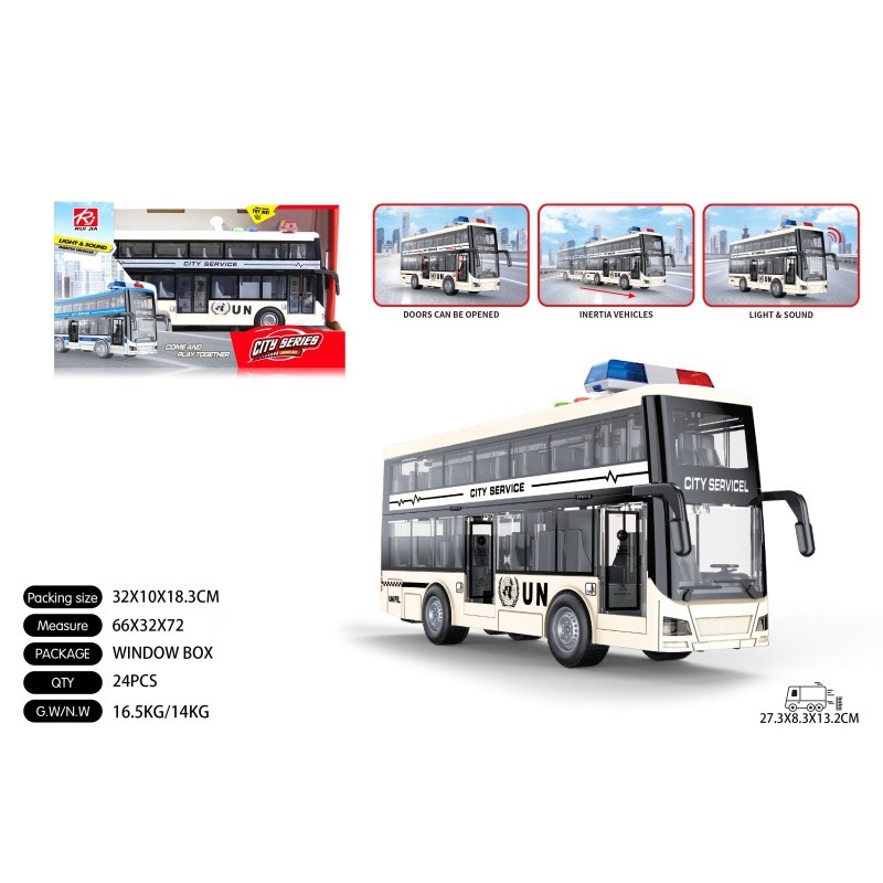 1:16维和双层巴士惯性灯光声音开门 单款单色包电-3*AG13 |