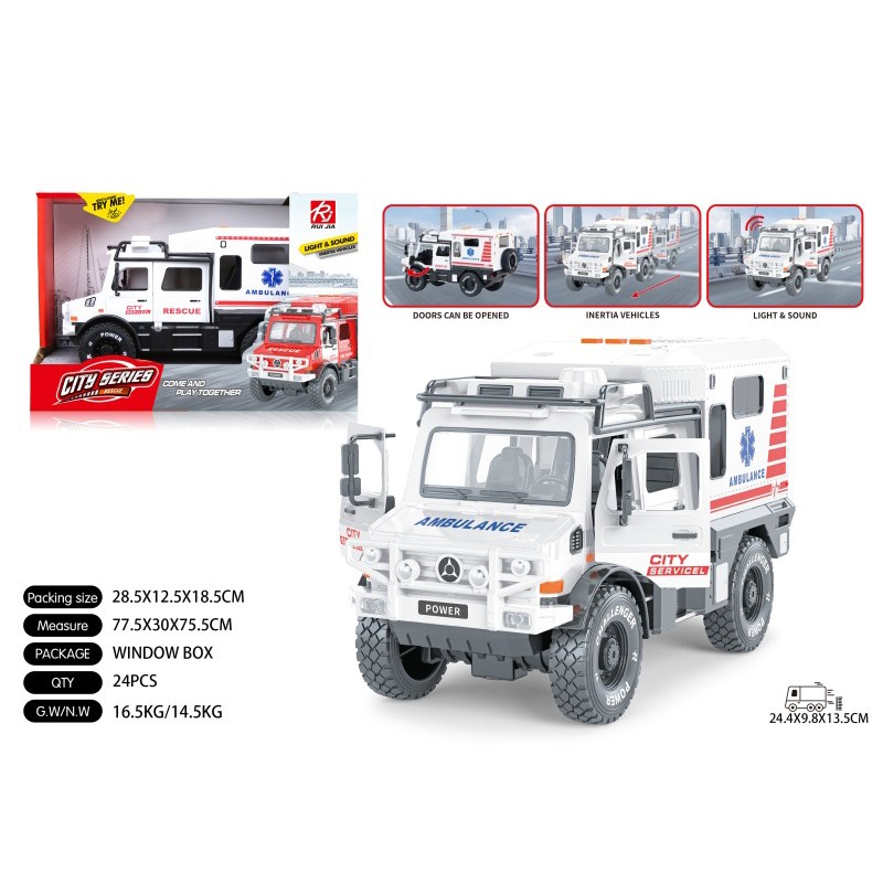1:16双开门救护车惯性灯光声音开门 单款单色包电-3*AG13 |