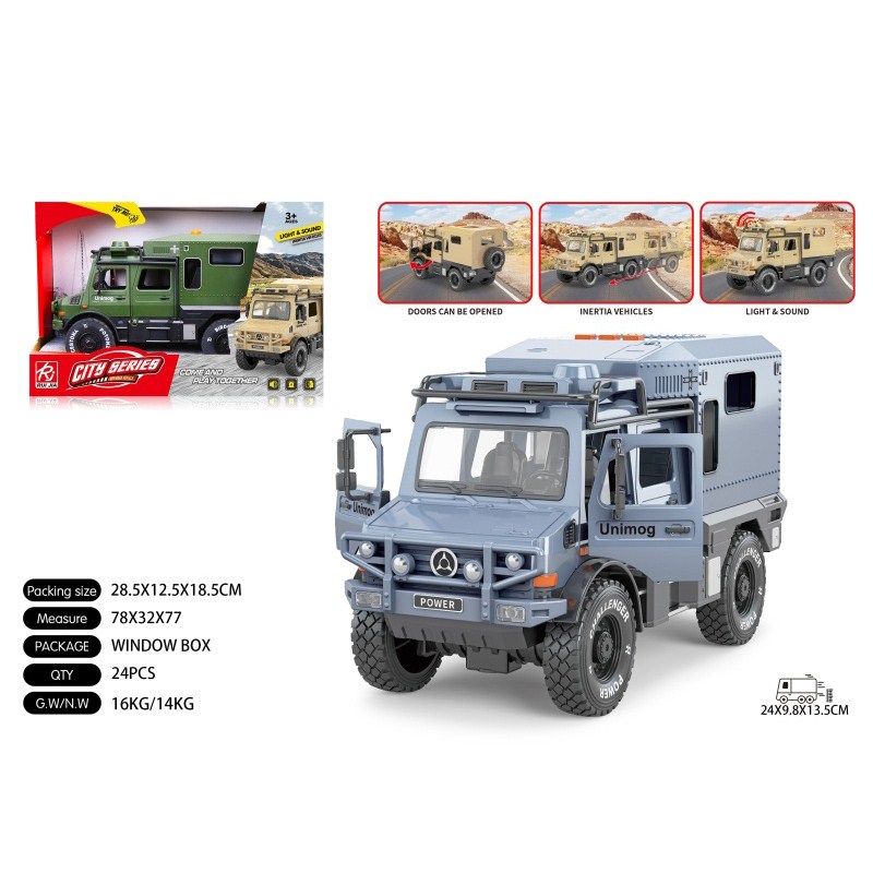 1:16双开门乌尼莫克房车惯性灯光声音开门 3色混装包电-3*AG13 |