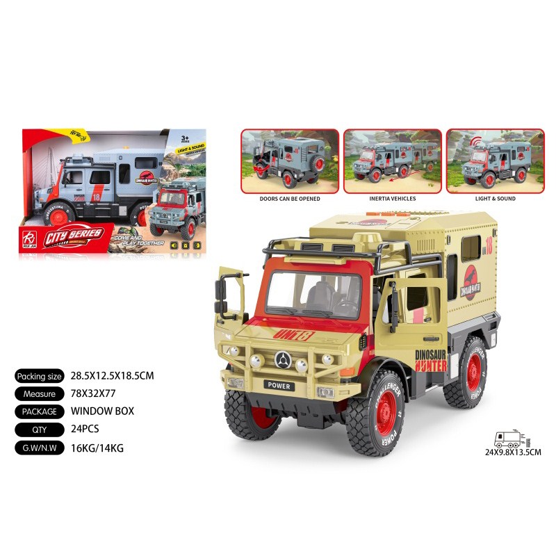 1:16双开门乌尼莫克恐龙房车惯性灯光声音开门 2色混装包电-3*AG13 |