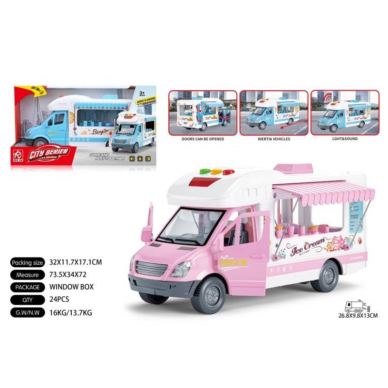1:16汉堡/冰淇淋餐车-四开门惯性灯光声音开门 2色混装包电-3*AG13 |