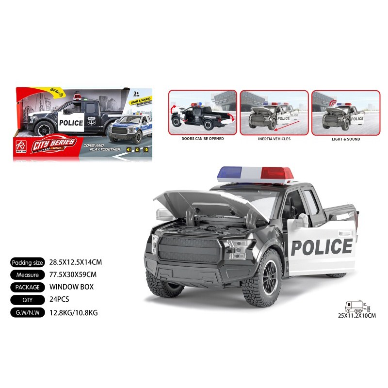 1:16皮卡警车-四开门-黑惯性灯光声音开门 单款单色包电-3*AG13 |