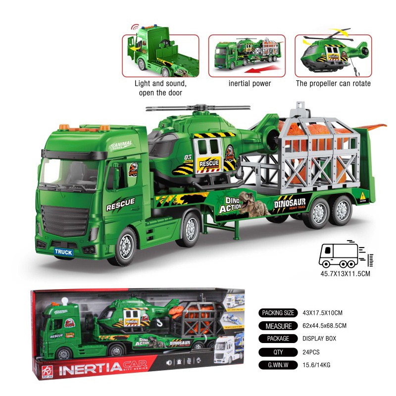 1:18恐龙运输车 惯性灯光声音开门(开门) |