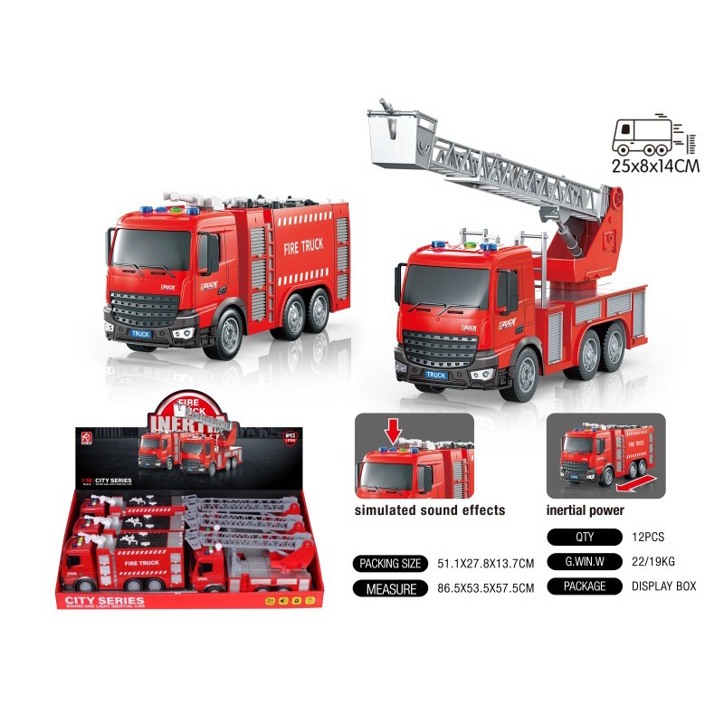 1:18长头消防拖车展示盒(小车惯性)惯性灯光声音 |