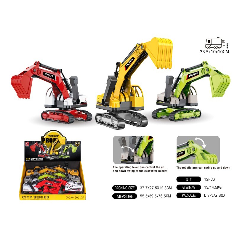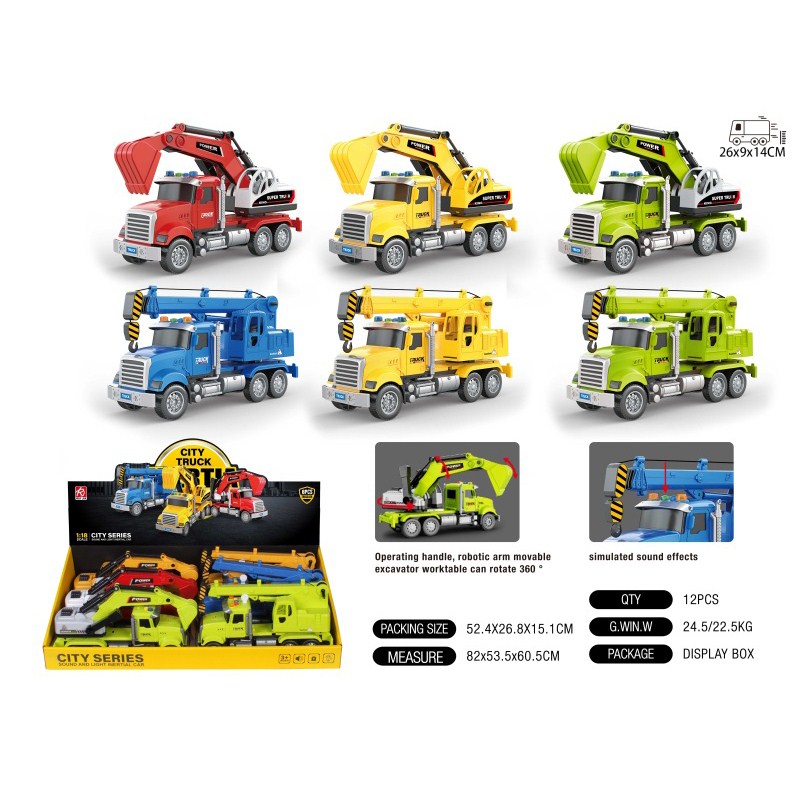 1:18长头挖掘车/吊车展示盒-惯性灯光声音 |