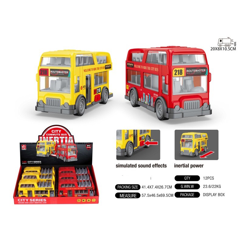 1:20观光巴士展示盒-惯性灯光声音开门 |