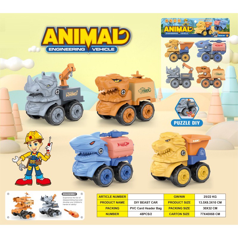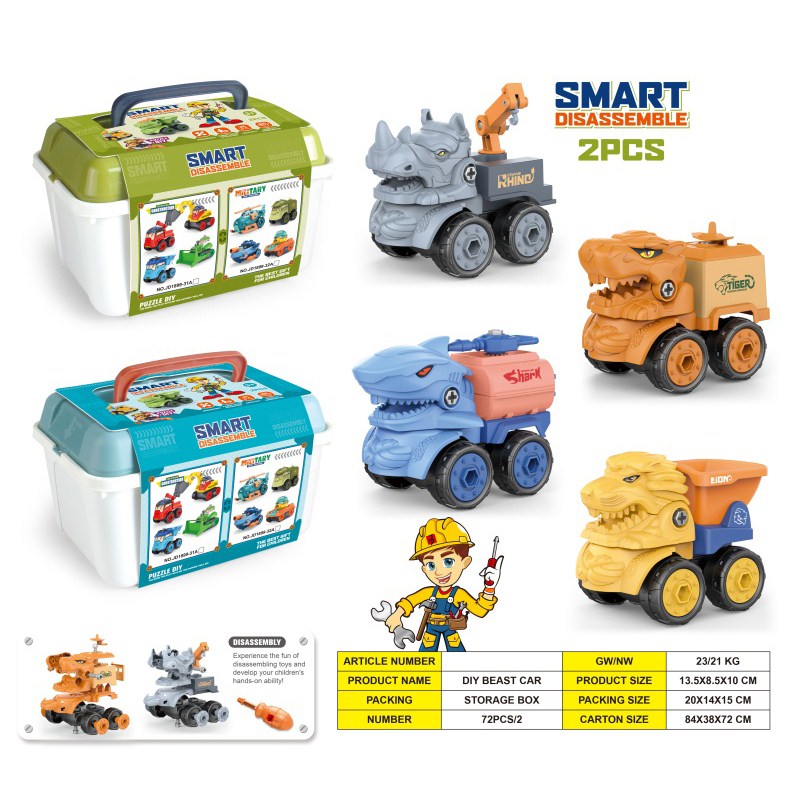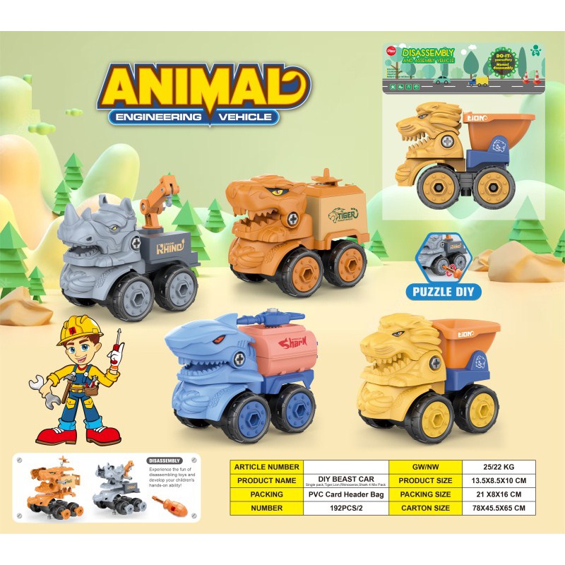 益智拆装-野兽车系列(老虎狮子犀牛鲨鱼4款混装) |