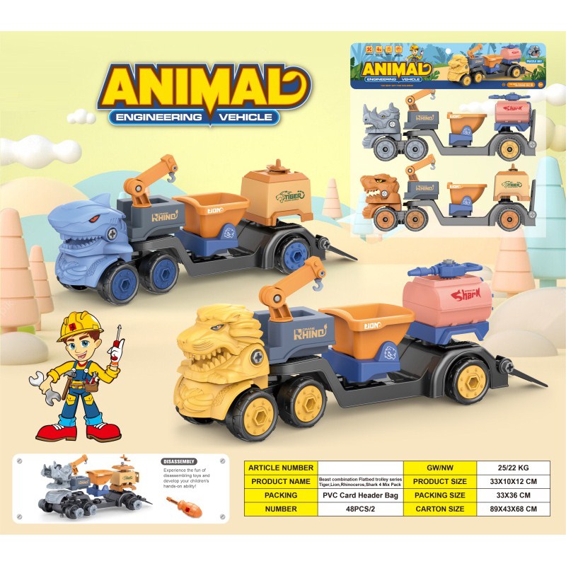 益智拆装-野兽组合车(老虎狮子犀牛鲨鱼4款混装) |
