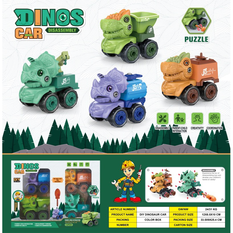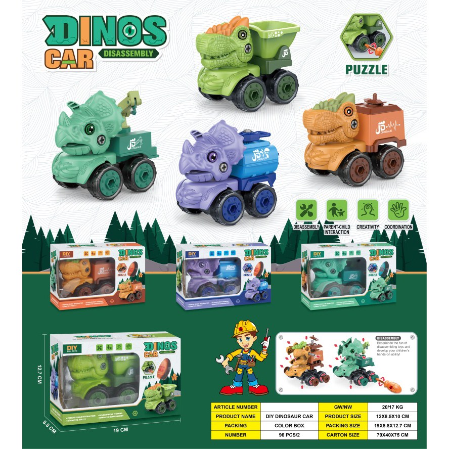益智拆装-恐龙车系列盒装(4款混装3只一盒) |