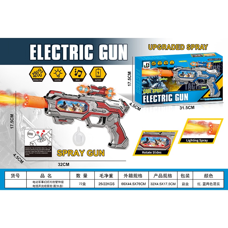 (升级版)电动军事幻灯片枪管伸缩电镀喷雾声光枪红/蓝混 |
