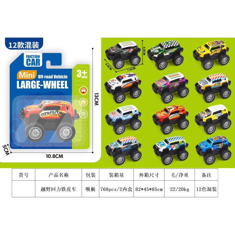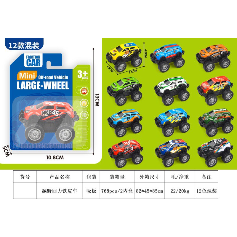 卡通迷你越野回力铁皮车 12色混装 |