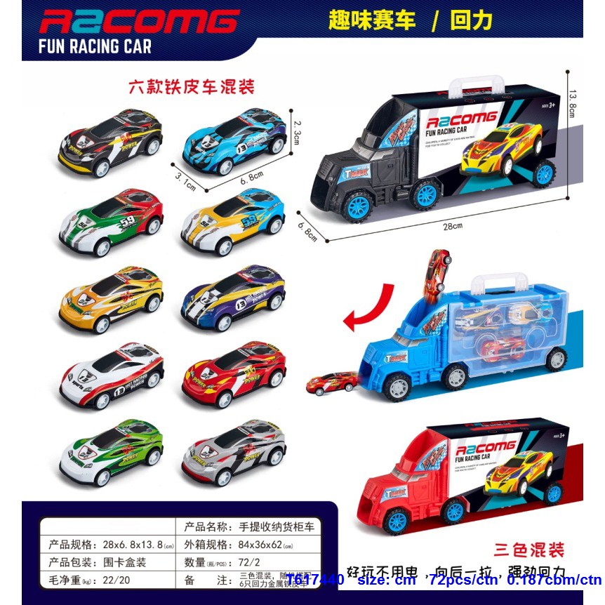 手提收纳货柜车(配6只回力金属铁皮车) |